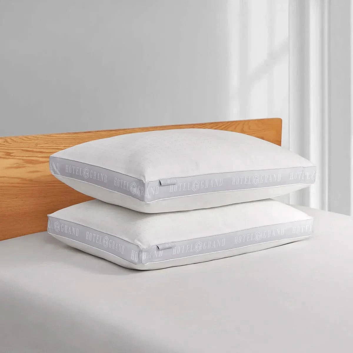 Indulge in one of life’s greatest pleasures: sinking into the perfect hotel pillow. Crafted with a 500 thread count high-quality cotton cover and true down alternative gel fiber filling, these pillows offer enduring comfort. Generously filled for medium/firm support and lasting coziness, they feature a 2” gusset for optimal head and neck support and are conveniently machine washable. Our Hotel Grand bedding collection aims to deliver luxurious comfort with no gimmicks, just pure quality. Experience the plush five-star bed in your own home today. Shop now to elevate your sleep experience with Hotel Grand bedding.