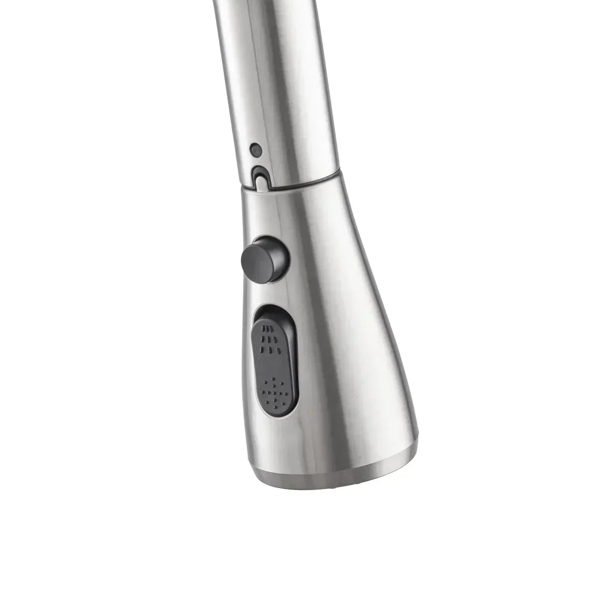 The pull-out faucet extends up to 16", allowing you to rinse those hard-to-reach spots in the sink basin.