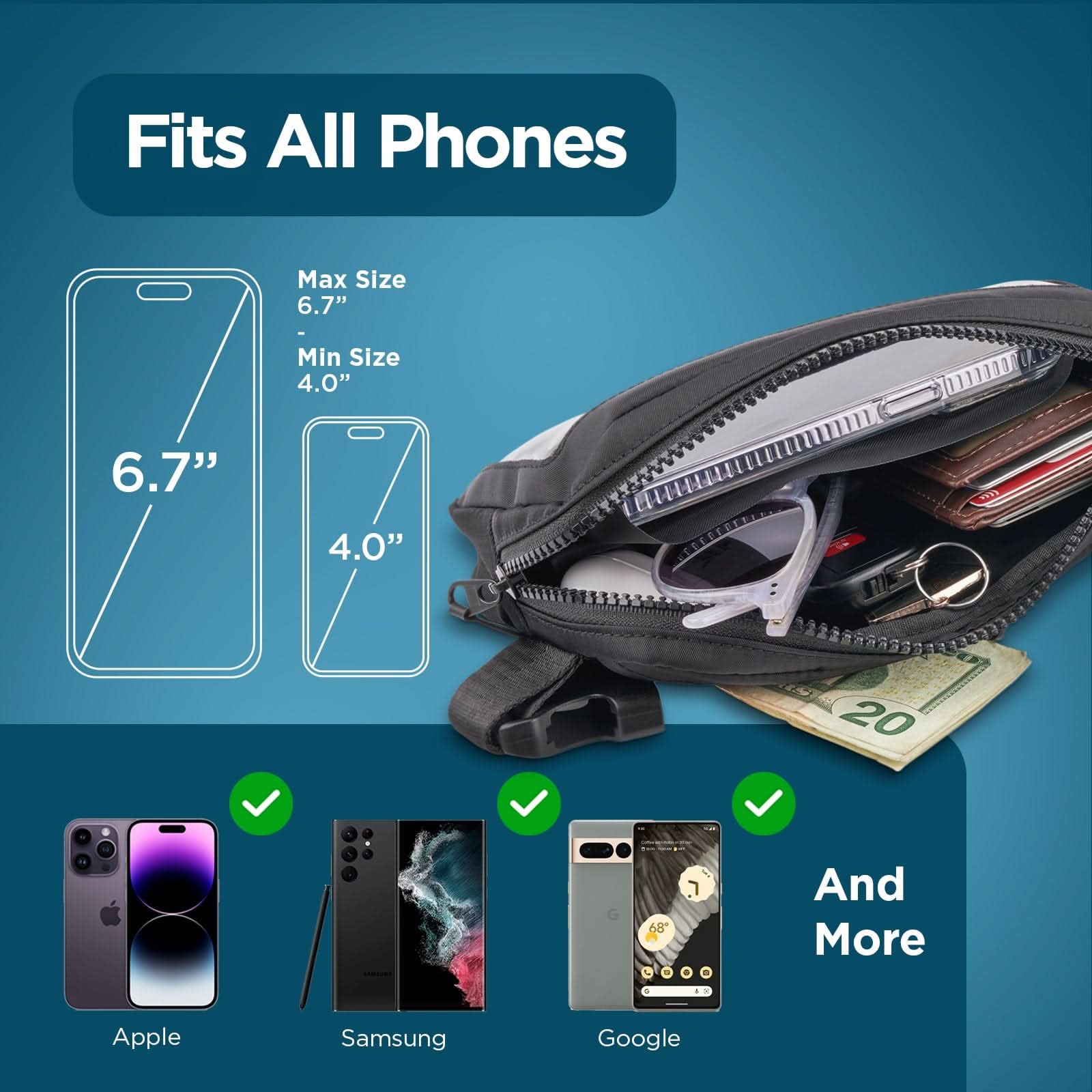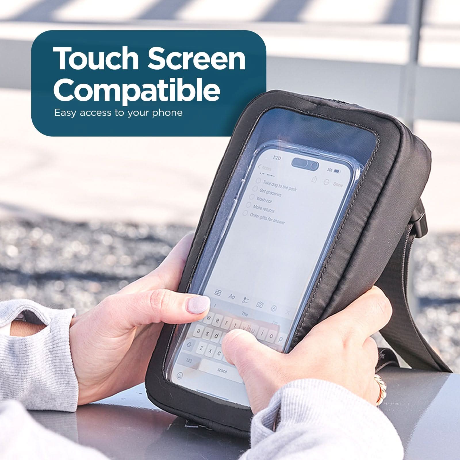 On the go? Merge fashion and convenience with the Phone Belt Bag by Case-Mate. Crafted with an adjustable comfort strap and separate pockets for device and personal items, the Belt Bag is designed with your convenience in mind. Utilize the touchscreen compatibility by sending a message or skipping songs without removing your phone from the bag!