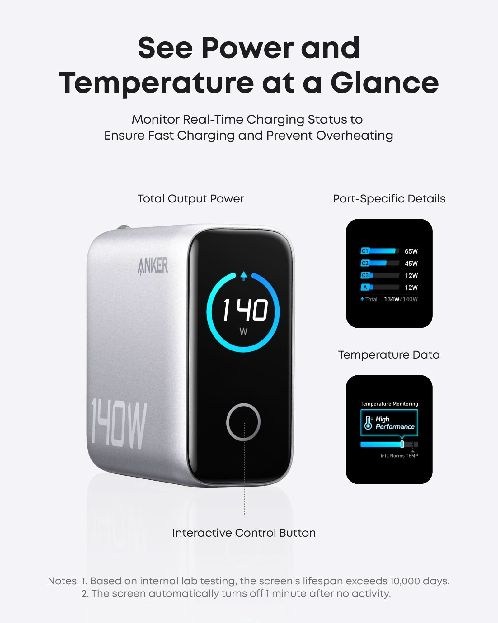 • Anker Charger (140W, 4-Port, PD 3.1) with USB-C Cable
