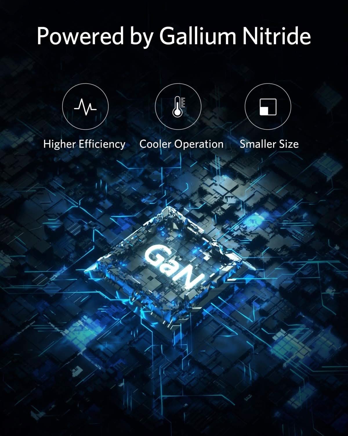 - Powered by GaN - Swapping out silicon for gallium nitride (GaN) has allowed us to take our world-famous charging technology and shrink it way down..