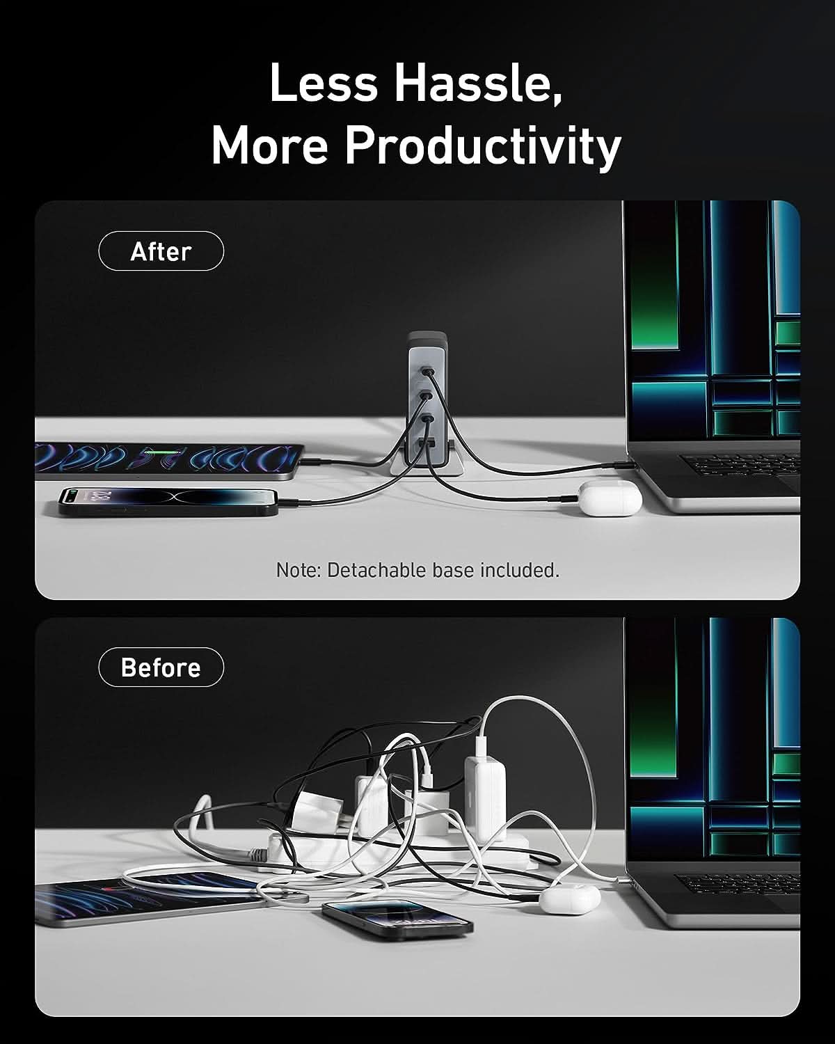 - Keep It Neat and Powerful: The charger's compact design with a detachable base ensures a clutter-free workspace while delivering efficient charging.