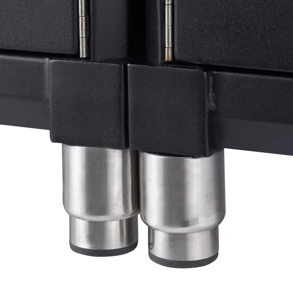 TRINITY PRO 13-piece garage set is large, durable, and built to last. Designed for professionals who value quality and remarkable craftsmanship, this commercial-grade set provides the perfect layout to organize a large garage, commercial facility, or workshop. The fully-welded 18-gauge steel frames provide maximum strength, and durability, to ensure they can handle the most challenging tasks. The cabinets can be arranged to create your custom storage or workspace configuration. Included are (3) locker cabinets, (4) wall cabinets, (4) base cabinets, and (2) 56x9 solid wood tops. The base cabinets with wood tops can be arranged to create (2) separate working spaces or positioned side by side to form one continuous working surface
