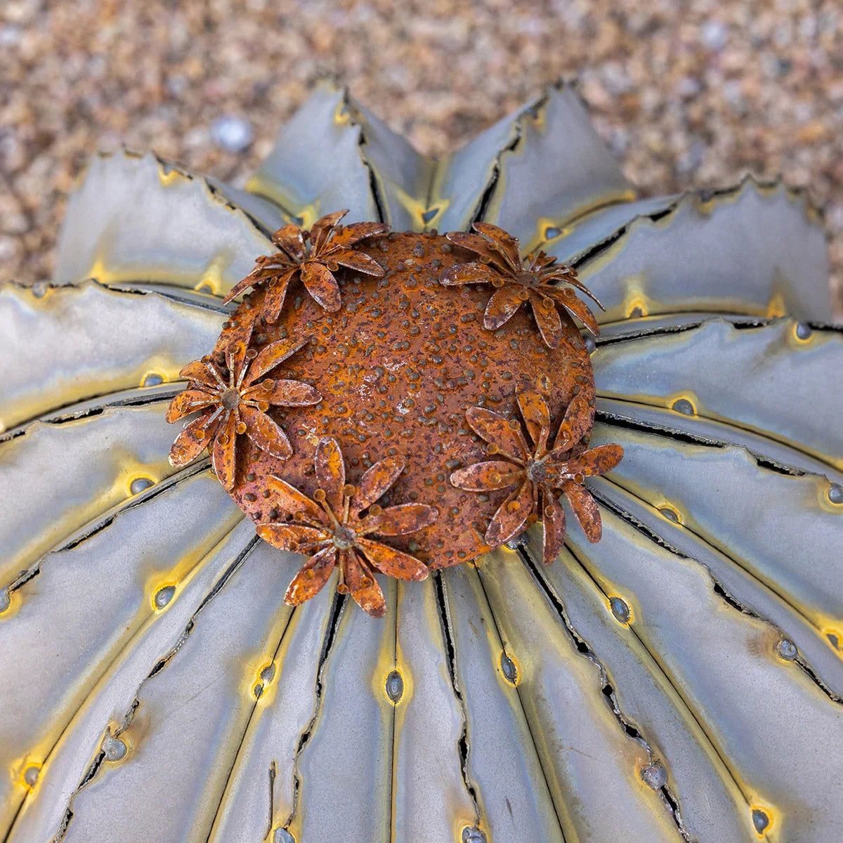Desert Steel's Metal Golden Barrel Cactus Torch is a stunning handcrafted sculpture. Blending desert beauty with functional torchlight for outdoor ambiance.