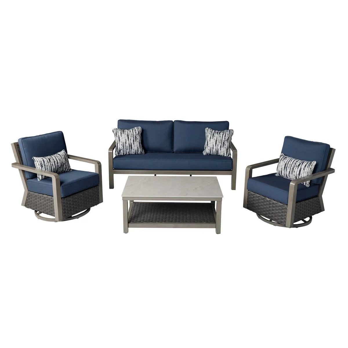 - Includes 1 Sofa, 2 Swivel Glider Chairs, 1 Coffee Table and Furniture Cover