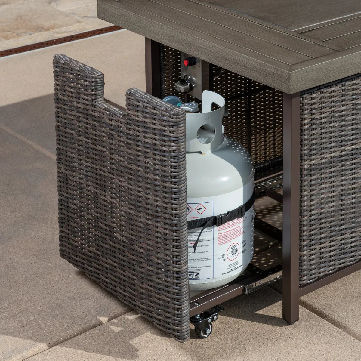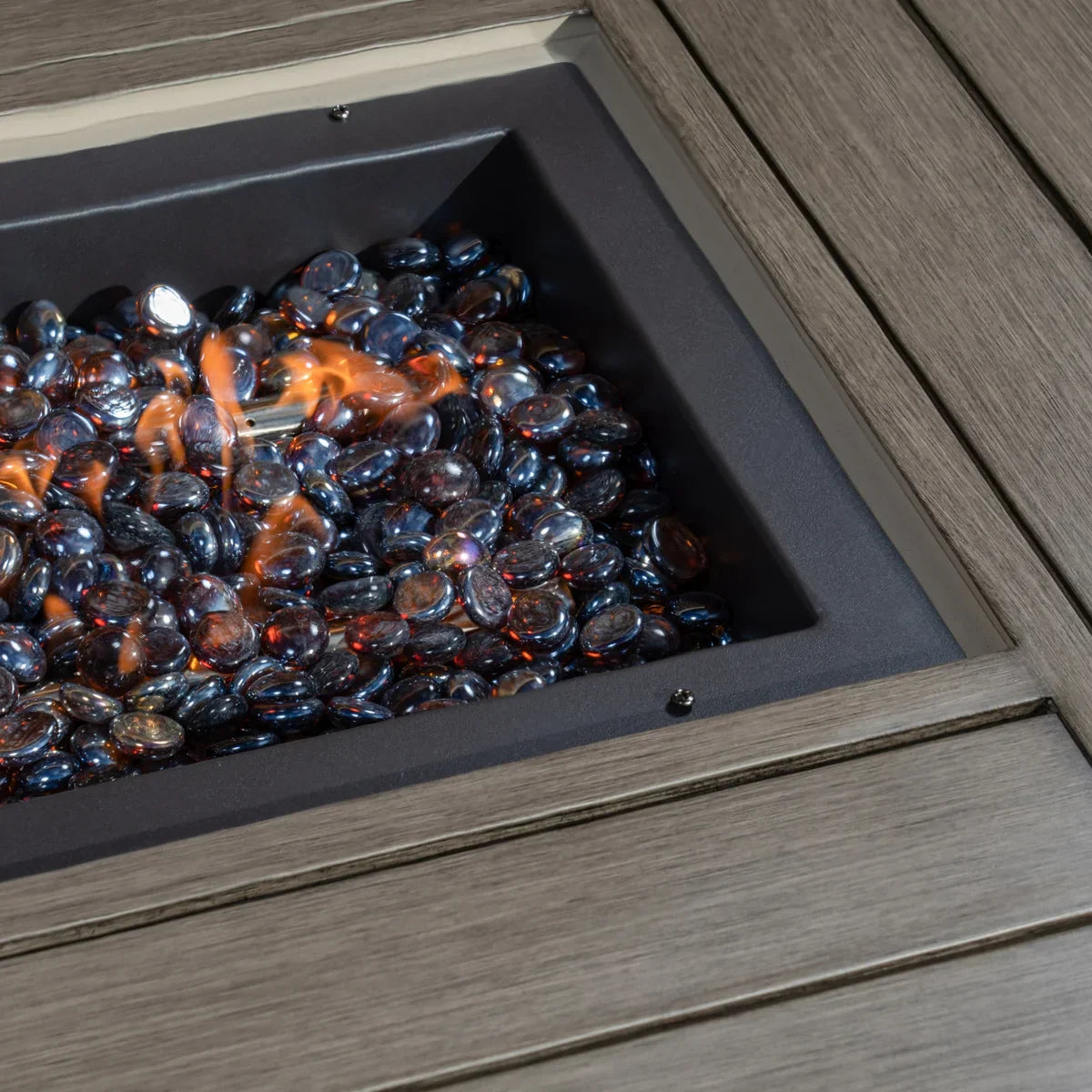 - Includes Sofa, 2 Swivel Rocking Lounge Chairs, and Fire Table
