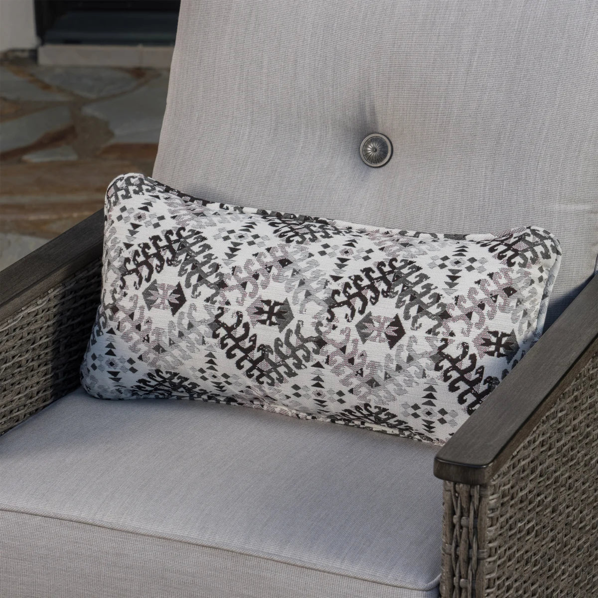 • Includes Two Woven Glider Chairs, One Porcelain Tile Side Table, and Two Lumbar Pillows