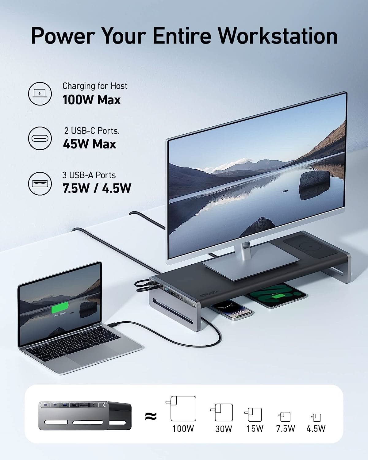 Anker 675 USB-C Docking Station (12-in-1, Monitor Stand, Wireless)