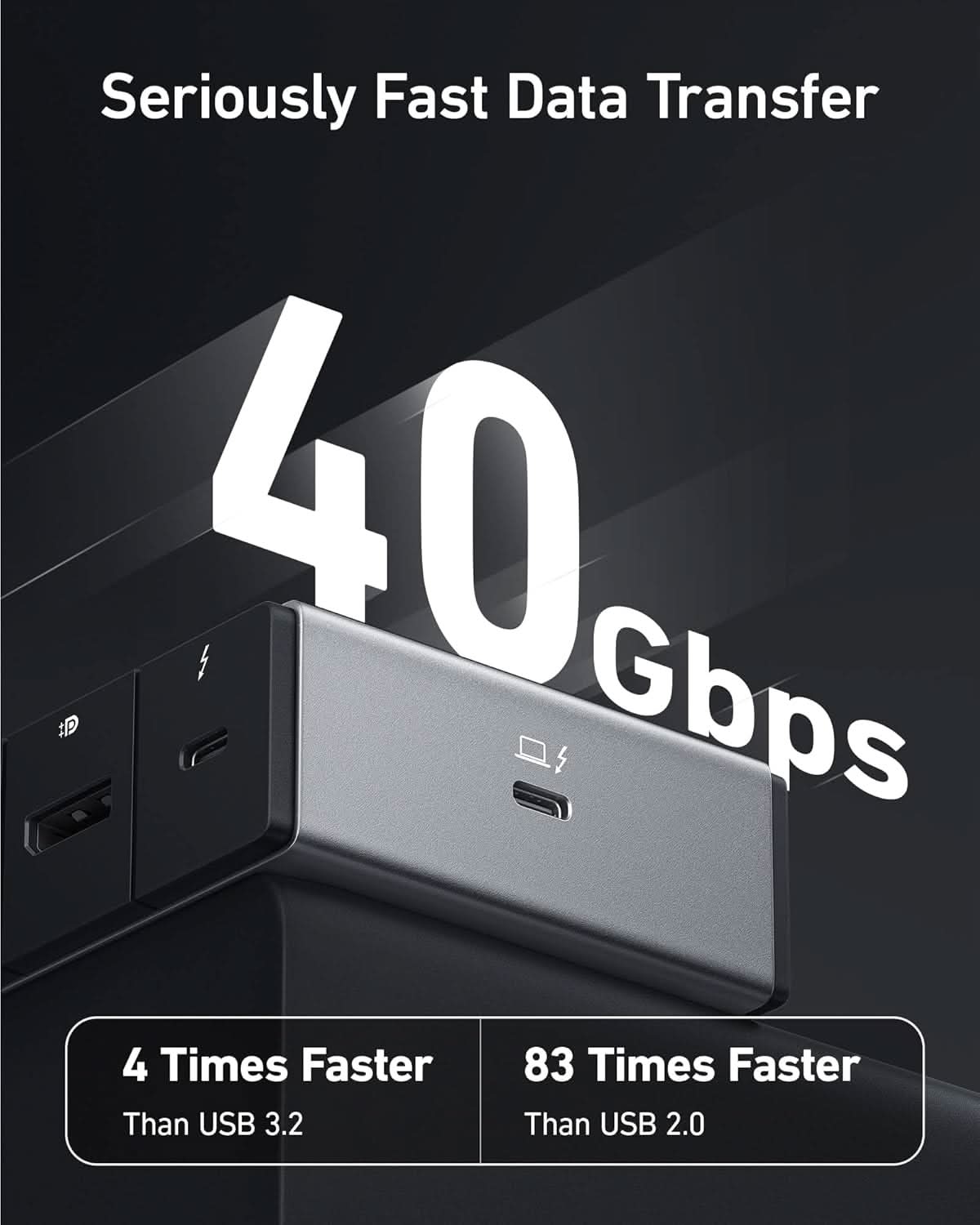 - Powered by Thunderbolt 4: With an upstream bandwidth of 40 Gbps, you can simultaneously display media to a single monitor in 8K and transfer files at up to 40 Gbps.