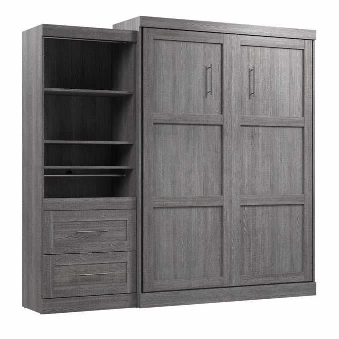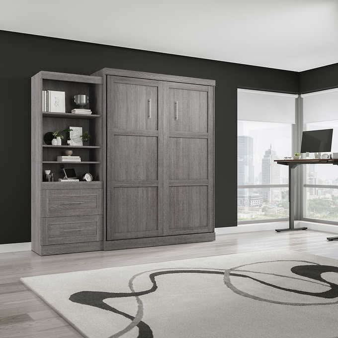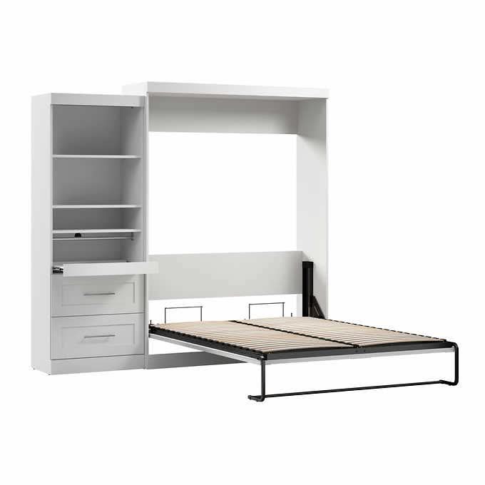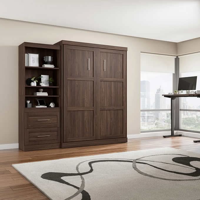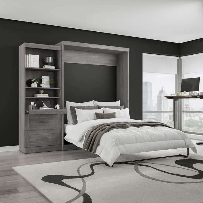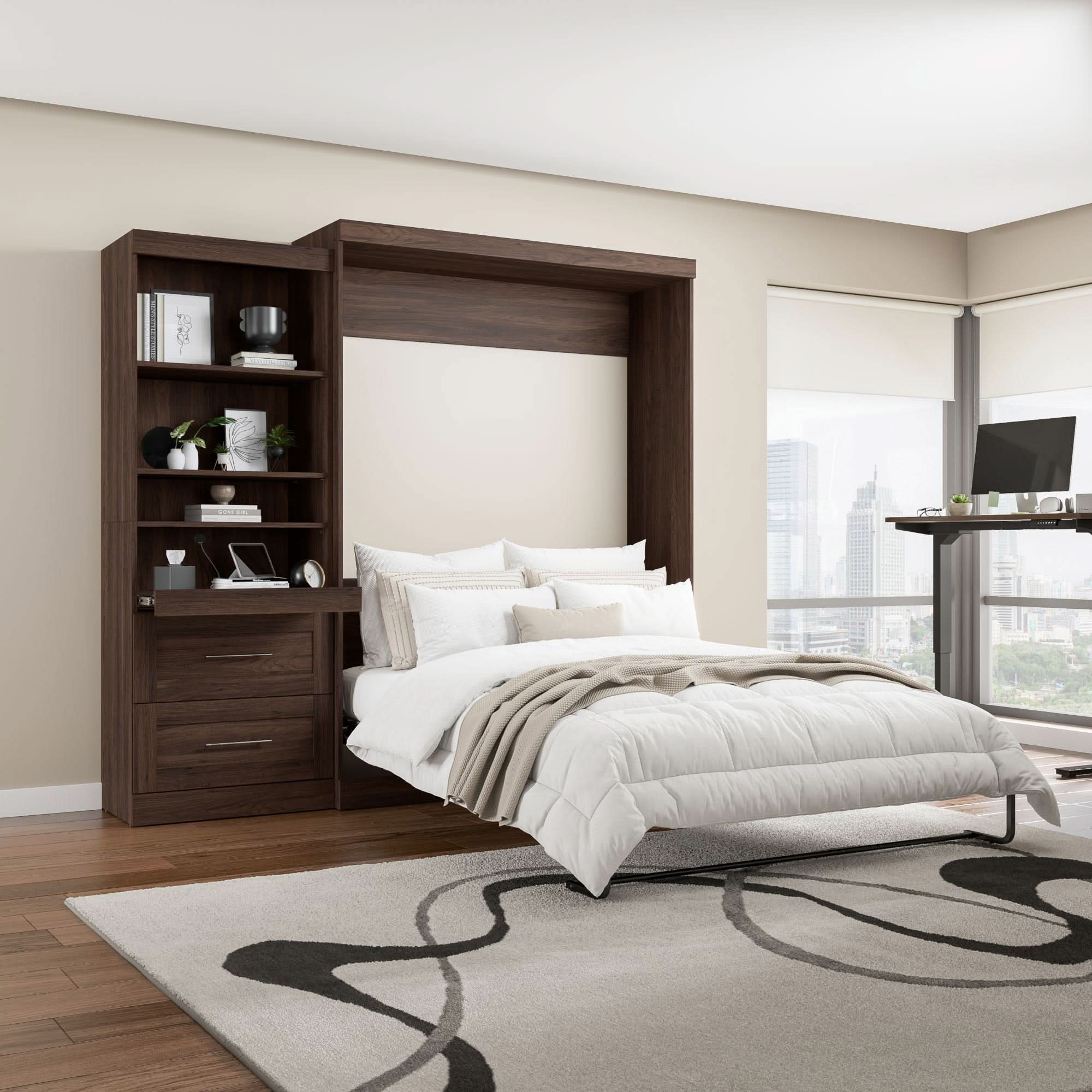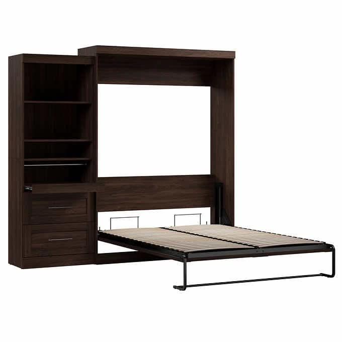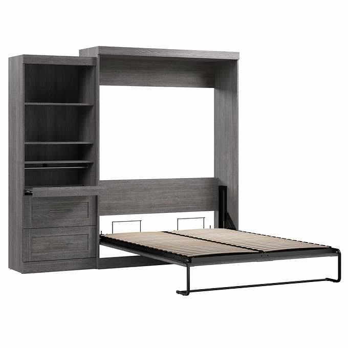 Boutique Queen Murphy Bed and Shelving Unit with Drawers and Pull-Out Shelf