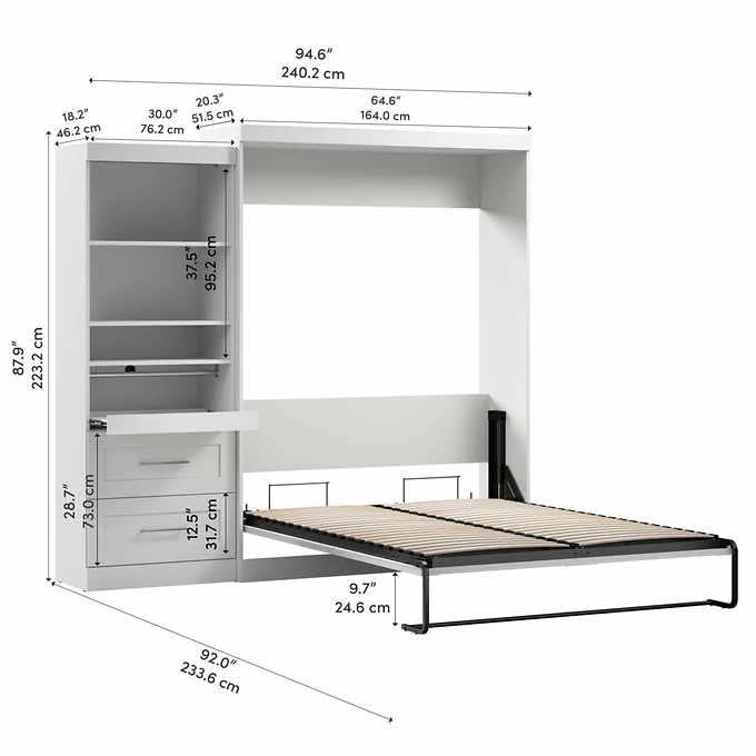 - Queen Murphy Bed: 64.6 in. × 20.3 in. × 87.9 in.