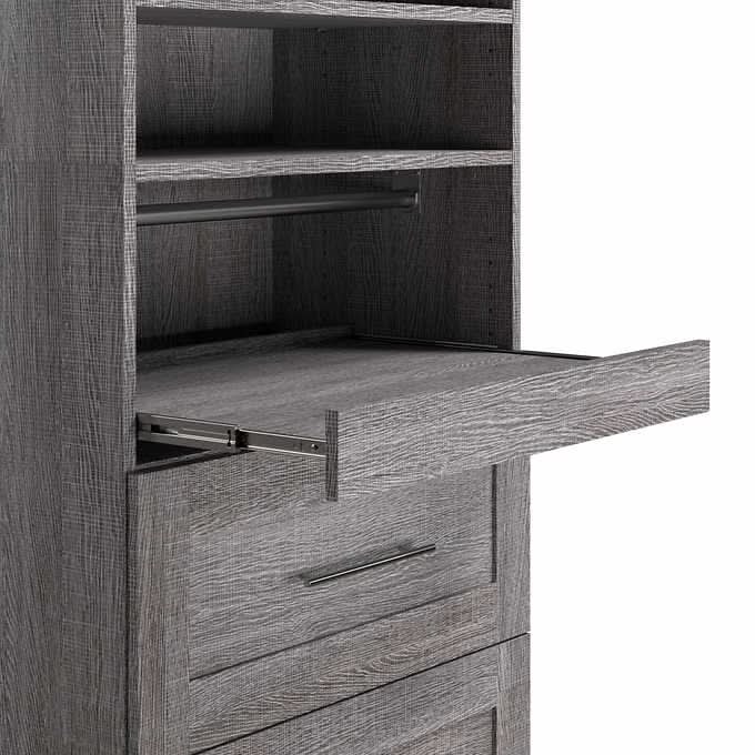 - Shelving Unit with Drawers and Pull-Out Shelf: 30 in. × 18.2 in. × 83.7 in.
