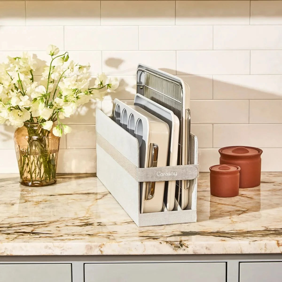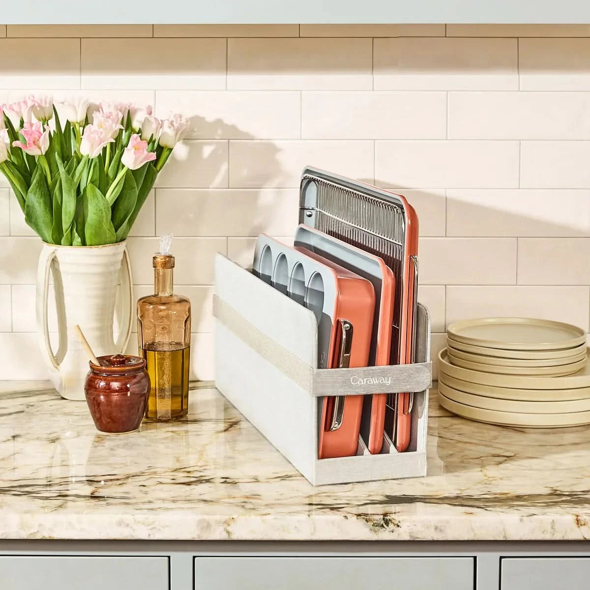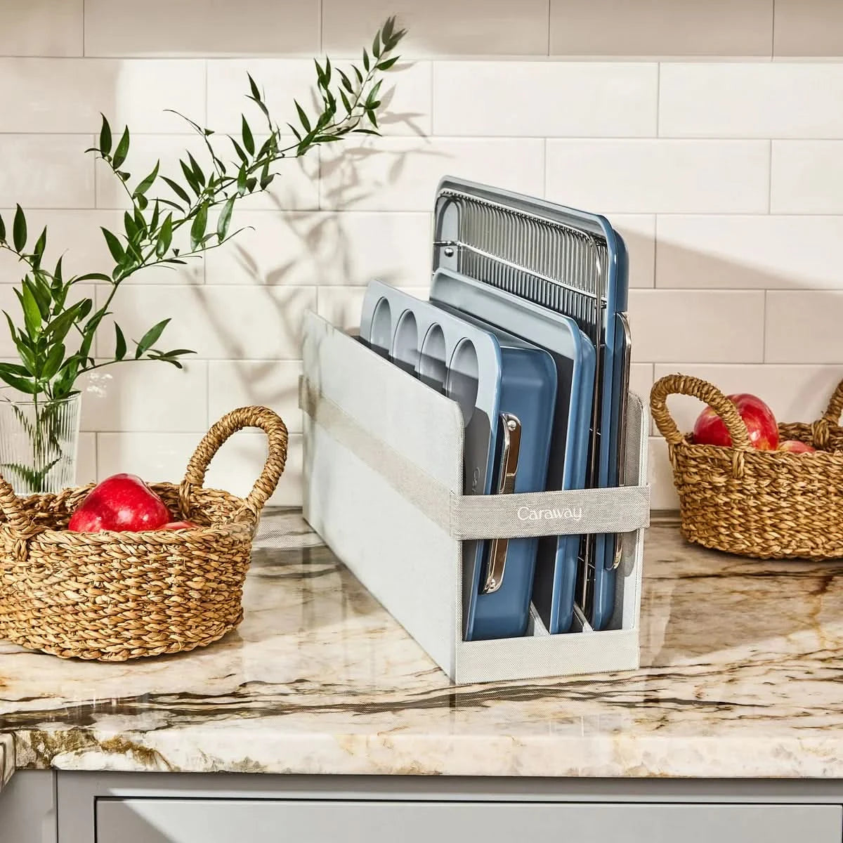 - Bundle includes complimentary bakeware storage to keep your kitchen tidy