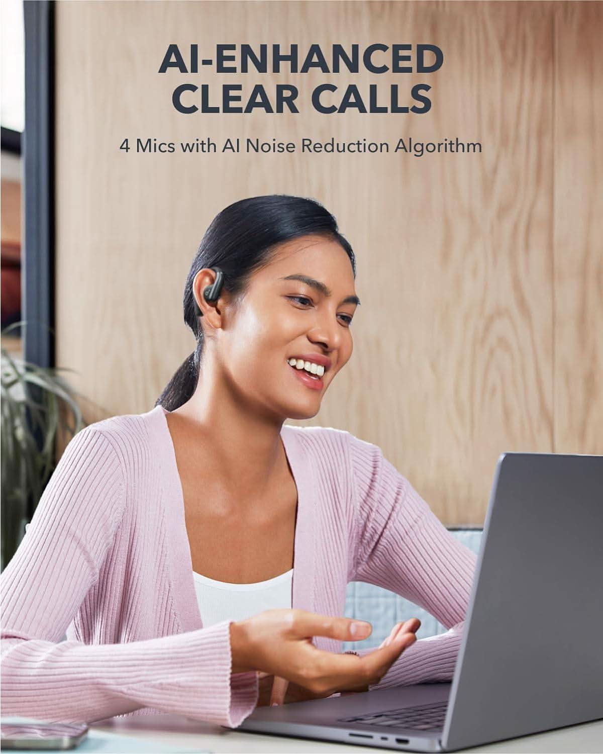 - Crisp Calls with 4 Mics and AI: AeroFit open-ear earphones feature 4 mics and an AI Noise Reduction Algorithm to offer pristine call quality for everyday conversations.