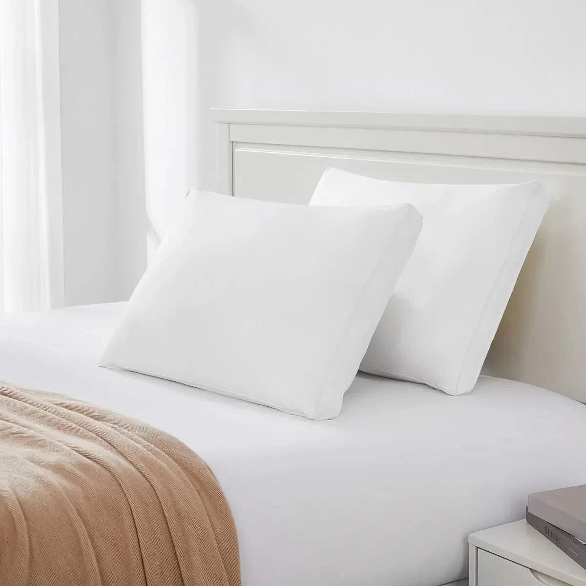 These Dream Naturally pillows come in a 2 pack and are made with a special cotton/wool blend. The wool yarns are inherently moisture wicking and the cotton fibers are naturally soft and breathable, creating cool, comfortable fabric to sleep on. The pillows are filled with PrimaLoft fiberfill.