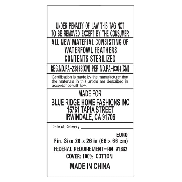 Dimensions:26’ x 26”; Weight: 4.2 lbs. PER PILLOW (Note 2 Pack)