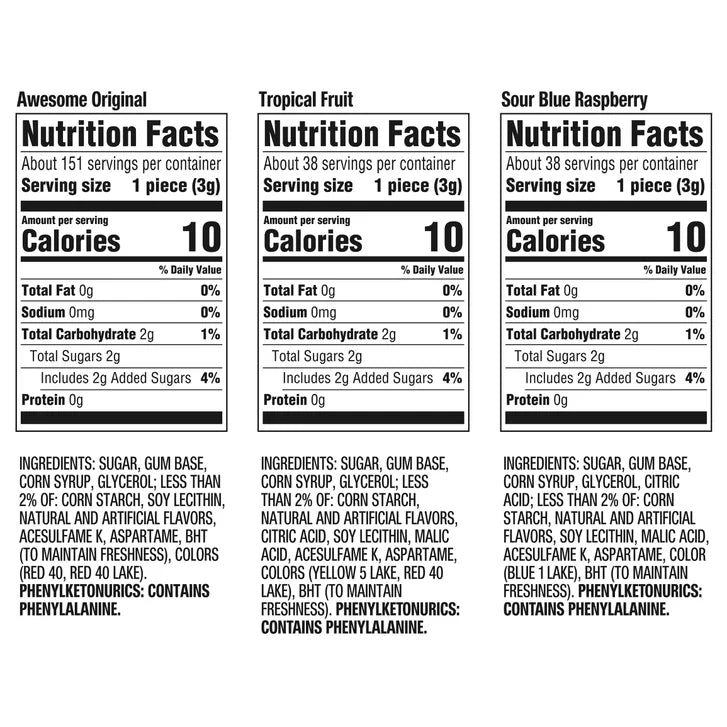 • Variety Pack Includes: 2-Sour Blue Raspberry, 2-Tangy Tropical, 8-Awesome Original