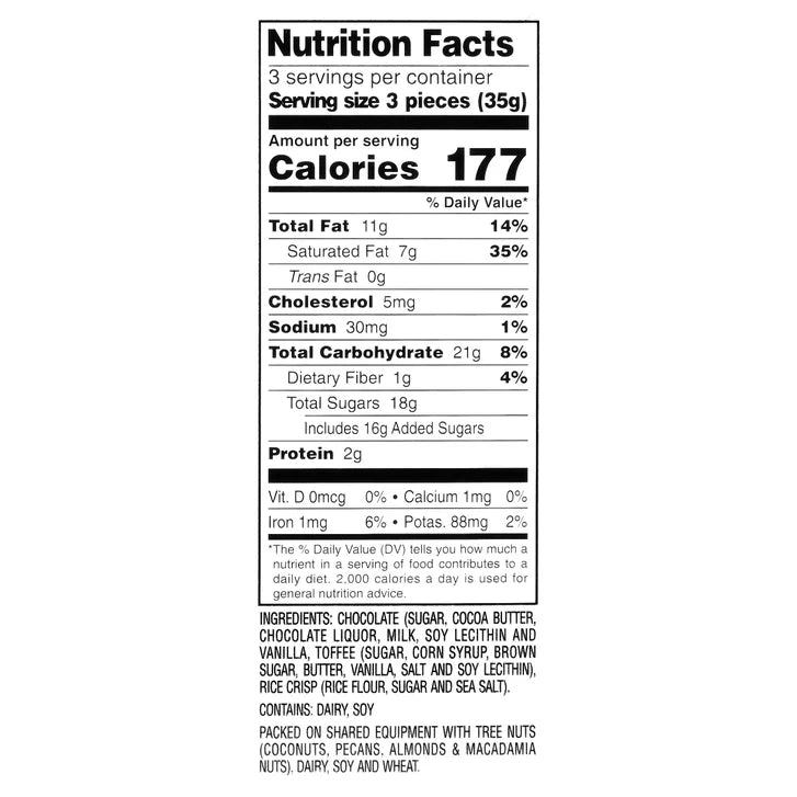 Luscious, rich milk chocolate mixed with toffee chips and crispy rice bites.