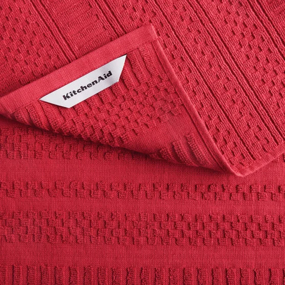Update your kitchen with this KitchenAid Cotton Classics 8-Pack Kitchen Towel Set. This set features eight solid kitchen towels measuring 28" x 17". Made of 100% cotton with woven textured design, these kitchen towels are both decorative and functional. Each towel features a convenient hang loop for drying and easy storage, and they are machine washable for effortless maintenance.Features: