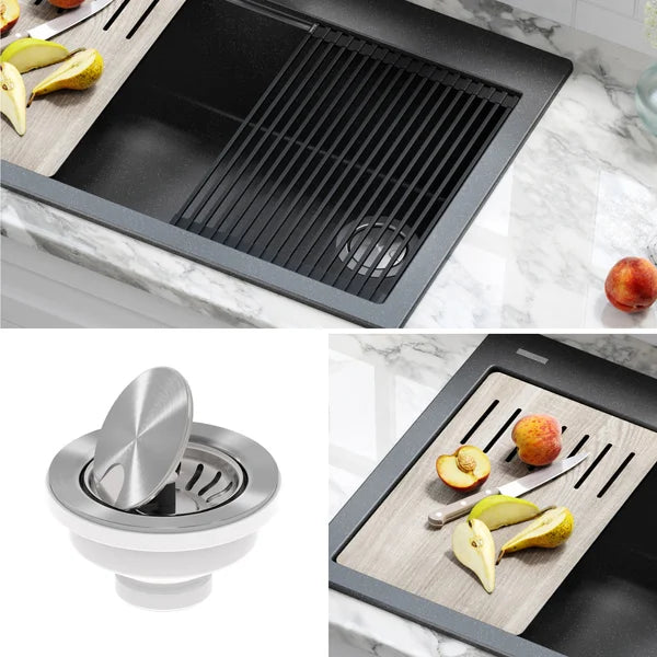 KRAUS 33" Drop-In Single Bowl Granite Kitchen Sink with Commercial Kitchen Faucet