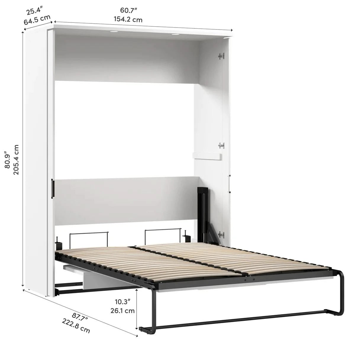 - Full Murphy Bed: 60.7" L × 25.4" W × 80.9" H