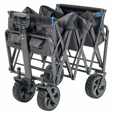 The Mac Sports deluxe extended folding wagon is great for trips to the park, camping, outdoor sporting events, gardening, & much more! The large all-terrain wheels allow for a seamless transition across multiple surfaces but with the incorporated braking mechanisms your cargo stays wherever you want it to. The extended design holds longer items like folding canopy or chairs flat in the wagon. No assembly required and goes from collapsed to fully functioning in just a matter of seconds.