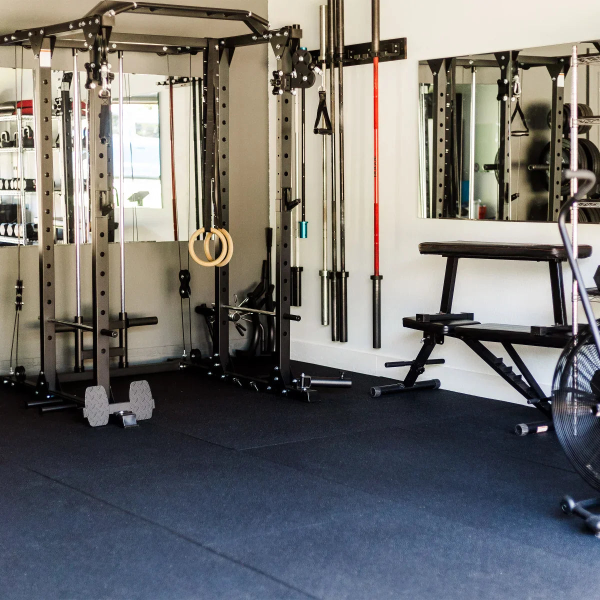 ½ in. thick durable black Utility Rubber Mat is made from recycled tire rubber. A versatile and economic solution with countless uses: gym flooring, truck beds, horse stalls, etc. East to install and easy to clean. Bottom surface is grooved to allow for the evacuation of liquids, great for when the mats are being used in garages, outside, at workstations, on ramps, in utility sheds or as truck bed liners. Has great anti-fatigue feature making it perfect for gyms, under exercise equipment and under free weights. Great wherever an impact resistant surface is needed to cut noise and vibration.