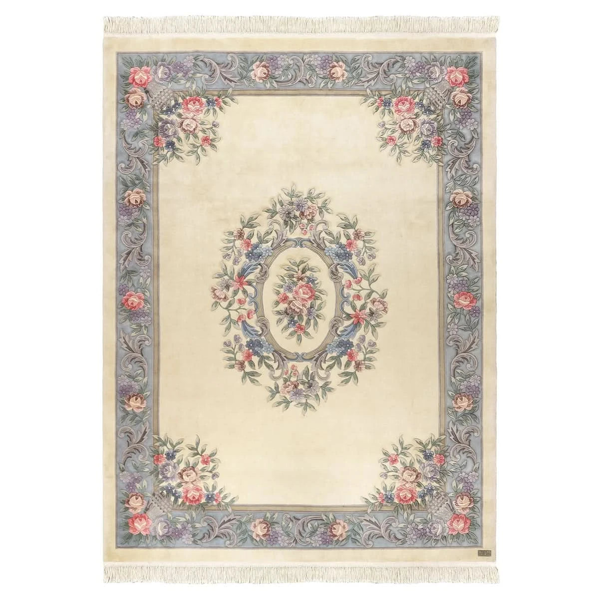The rug is the gold standard of handmade rug production. The pile is wool, incredibly thick and soft, and finished with hand-carved sculpturing of design elements for dramatic effect. Each of these rugs is created by skilled artisans who use centuries old techniques that are largely unchanged over many generations. While all of the rugs within a collection will feature the same colors and designs, the nature of handmade rugs is such that each piece can have subtle differences which make them, literally, “one of a kind.” This is a unique feature of handmade carpets. These differences range from slight color variations to subtle differences in design and “scale” of the rug. These differences can be due to the hand knotting and yarn dyeing processes. Larger pieces will have more detail in the designs and smaller pieces will have design adjustments so that the pattern is suitable for the size of the rug.