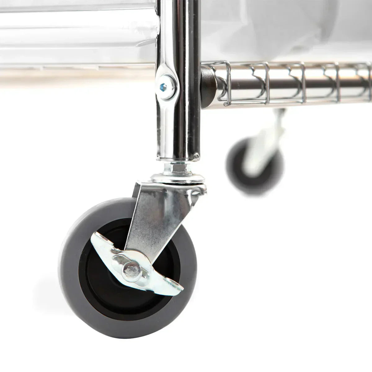 Easily sort your darks, lights and delicates with Seville Classics 3-bag Laundry Sorter with Adjustable Clothes Bar. This cart is constructed of heavy-duty chrome plated steel and rolls smoothly on any surface, allowing you to move heavy loads with ease. Each of the three machine washable polyester laundry bags are easily removed with wire handles and naturally close to lock in the load. A wire grid bottom shelf supports heavy bags and prevents sagging. An adjustable hanging bar can be raised to a height of 5.51ft, ideal for drying freshly laundered clothes, or lowered to 3.41ft for convenient storage. An adjustable clothes bar allows for a convenient location for storage for hanging garments but lowers to allow for easy storage.