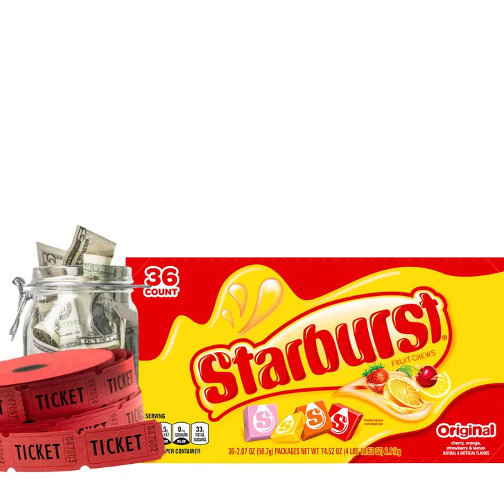 Experience the EXTRAordinary juiciness of STARBURST Fruit Chews. With 36 singles size packs of STARBURST Original Candy in every box, there's plenty of fruity, chewy fun for everyone. Featuring the original STARBURST Candy flavors that started it all: strawberry, cherry, orange and lemon flavors. This bulk candy package is great for stocking concession stands, vending machines or the office pantry. From STARBURST candies right out of the wrapper to STARBURST recipes and decorations, there are endless ways to add a burst of juicy flavor every day.