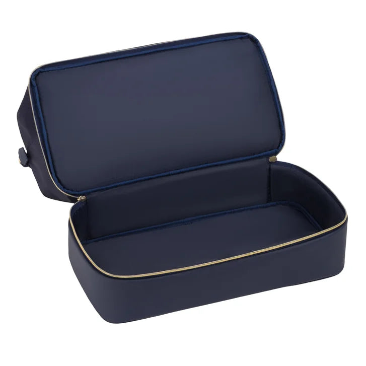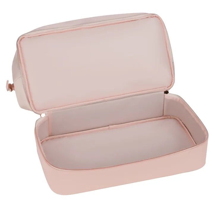 Pass-thru trolley sleeve slides over the handle of wheeled luggage for easy luggage consolidation