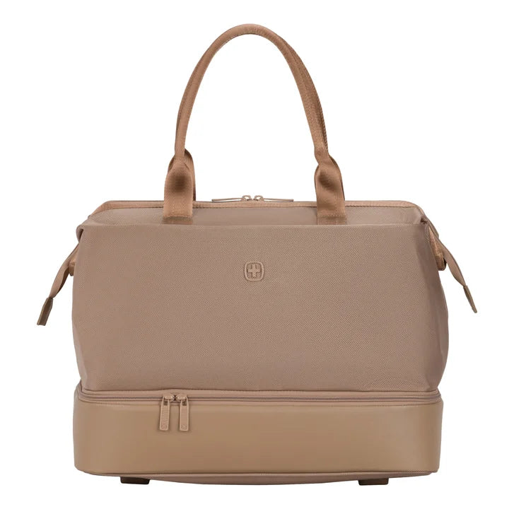 Meet the carry on that everyone's talking about: The Swissgear 1097 Weekender Tote Travel Bag. We crafted this bag with the intention of simplifying your weekend packing with its convenient, easy-access, wire-framed opening, a padded pocket for a 15-inch laptop, and a handy zippered and fully padded bottom compartment just perfect for your shoes, toiletries, or travel necessities you may want to protect or keep separate from the rest.
