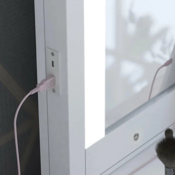 - 2 USB Power Ports (USB and USB-C) on Side of Mirror to Charge Devices