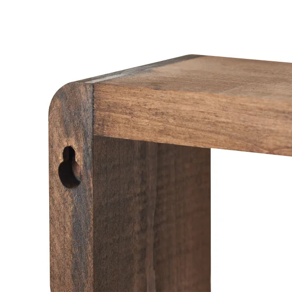 TRINITY 32” stackable floating box shelf is ideal for your living room, bedroom or office. The solid knotty alder wood and walnut finish bring comforting warmth to any room in your home. The keyhole slots allow for easy hanging, a flush wall mount and sturdy support to display books, keepsakes, or picture frames.