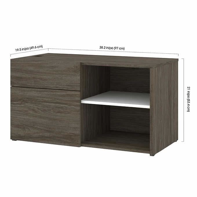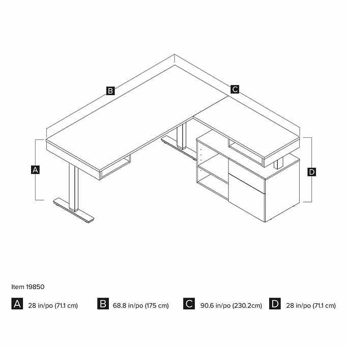 Specifications Desktop Material - Wood Number of Pieces - 2 Piece Shape - L-Shaped Standing Desk - Height - 28.1 in. - 45 in. Standing Desk Dimensions: W x L - 71.1 in. x 68.8 in. Standing Desk Weight - 288.5 lb.