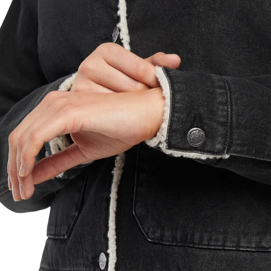 Classic women's trucker jacket from Woolrich, cut in a slightly cropped, boxy fit and lined with faux shearling for extra warmth and comfort.