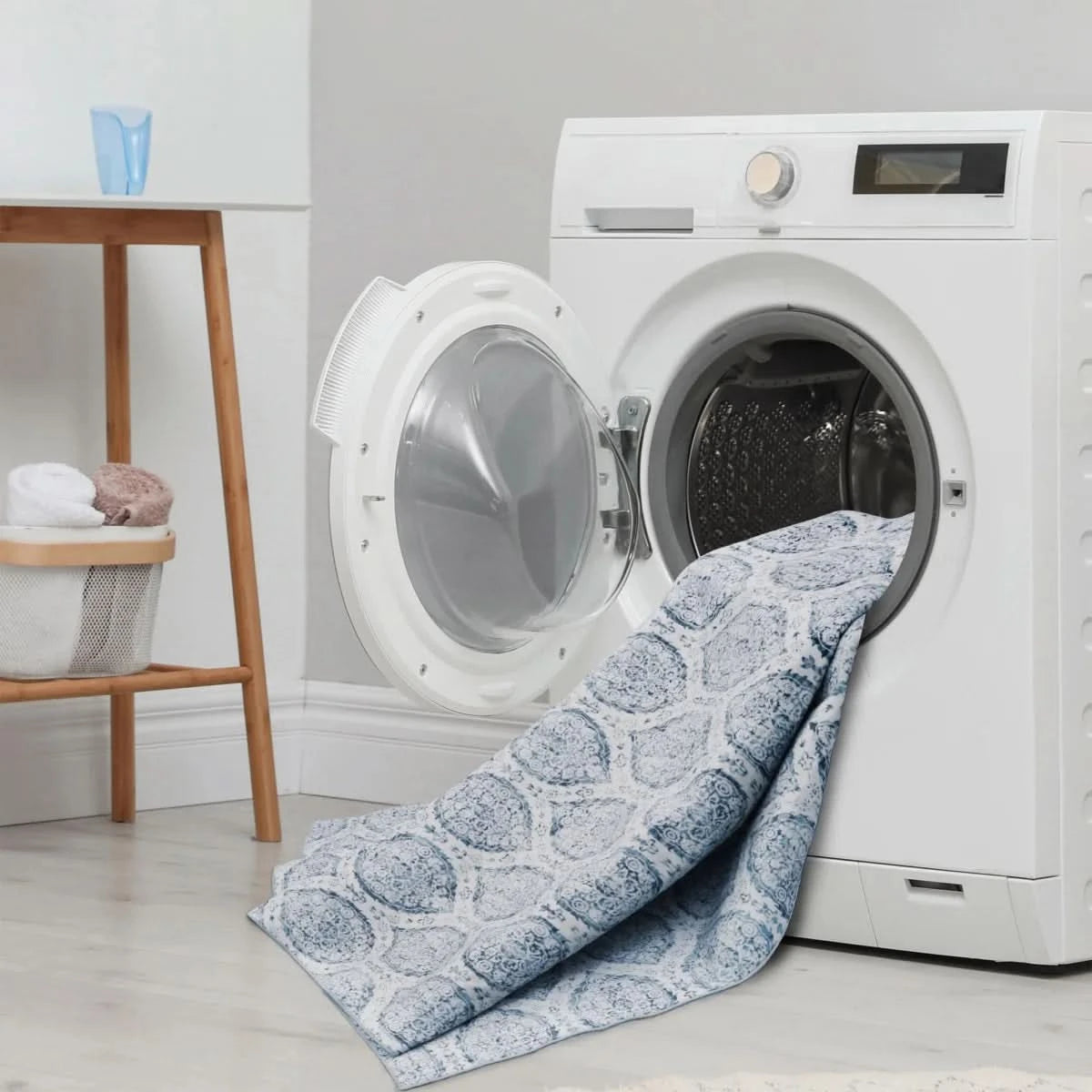 This washable area rug is the perfect addition to elevate your living room, dining room, or family room. This generously sized rug, not only provides ample coverage for any of these spaces but also offers the convenience of easy maintenance. Designed to withstand the demands of daily life, it's made with washable materials, allowing you to keep it looking fresh and clean with minimal effort.