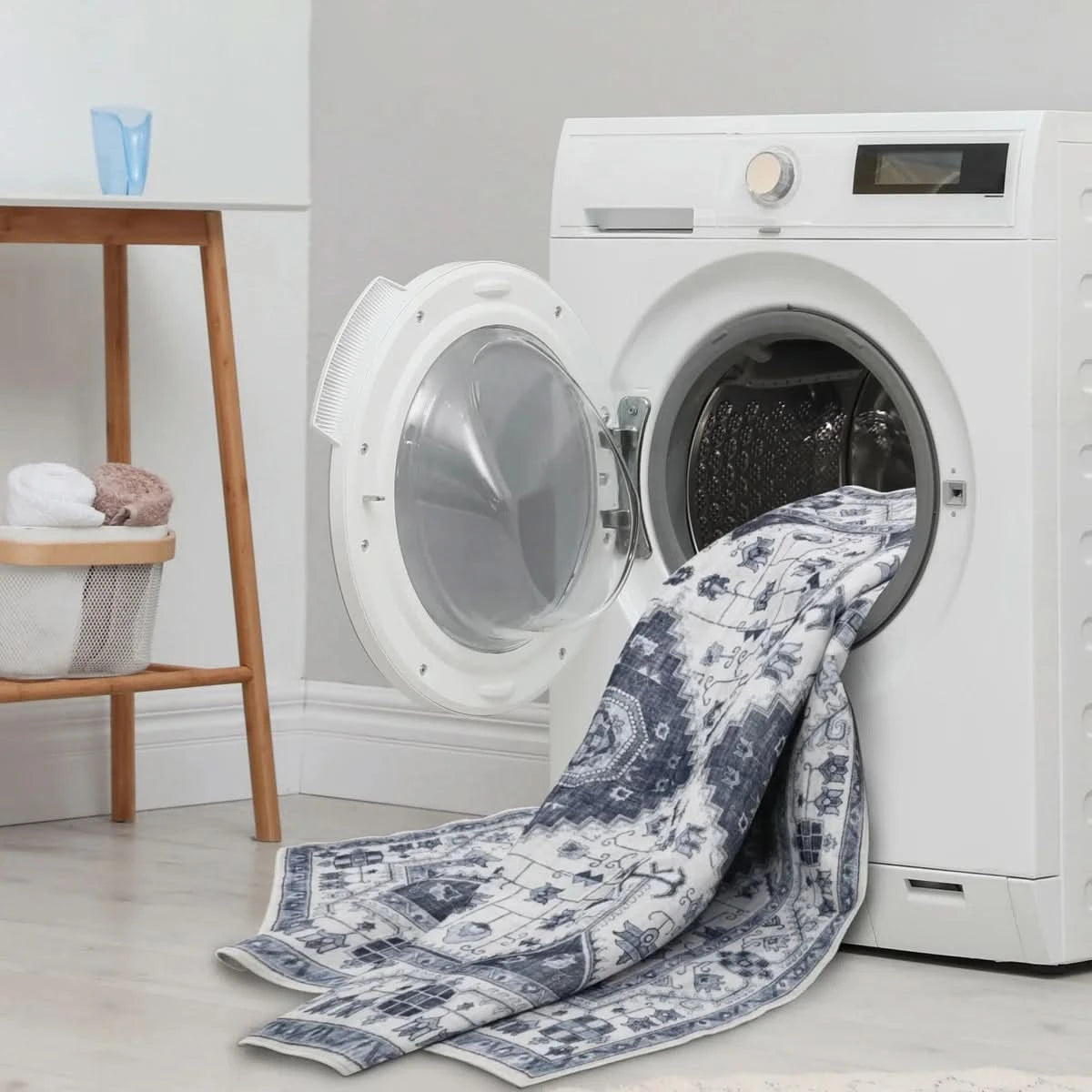 This washable area rug is the perfect addition to elevate your living room, dining room, or family room. This generously sized rug, not only provides ample coverage for any of these spaces but also offers the convenience of easy maintenance. Designed to withstand the demands of daily life, it's made with washable materials, allowing you to keep it looking fresh and clean with minimal effort.