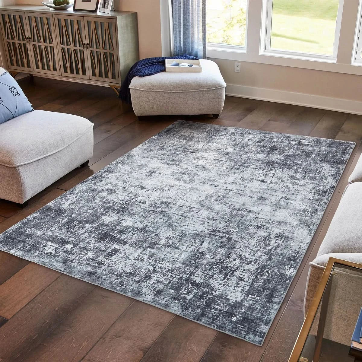 This washable area rug is the perfect addition to elevate your living room, dining room, or family room. This generously sized rug not only provides ample coverage for any of these spaces, but also offers the convenience of easy maintenance. Designed to withstand the demands of daily life, it's made with washable materials, allowing you to keep it looking fresh and clean with minimal effort.