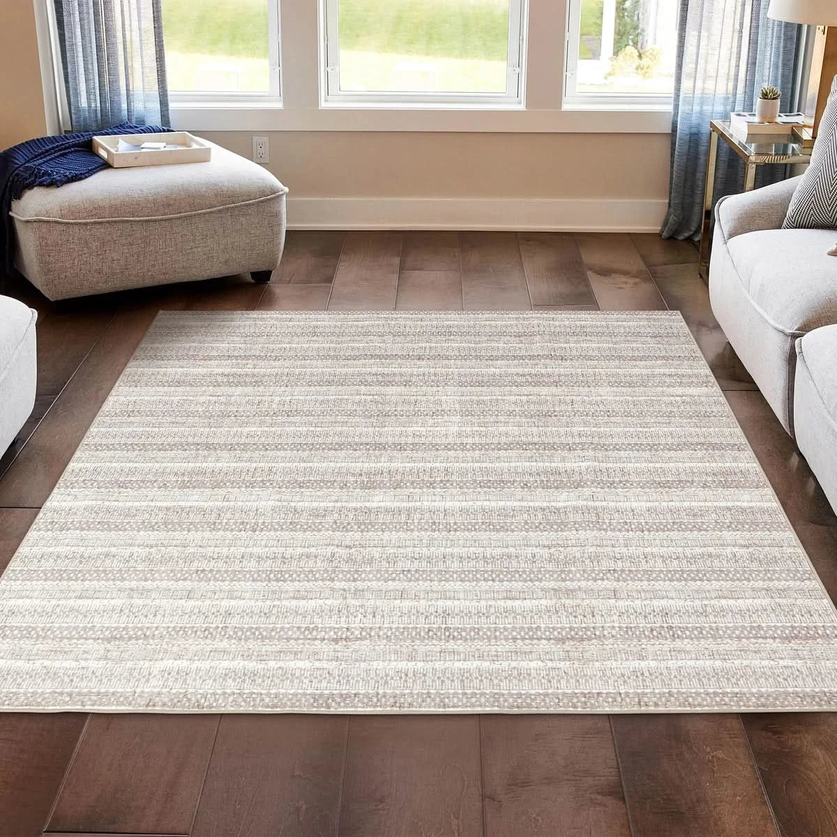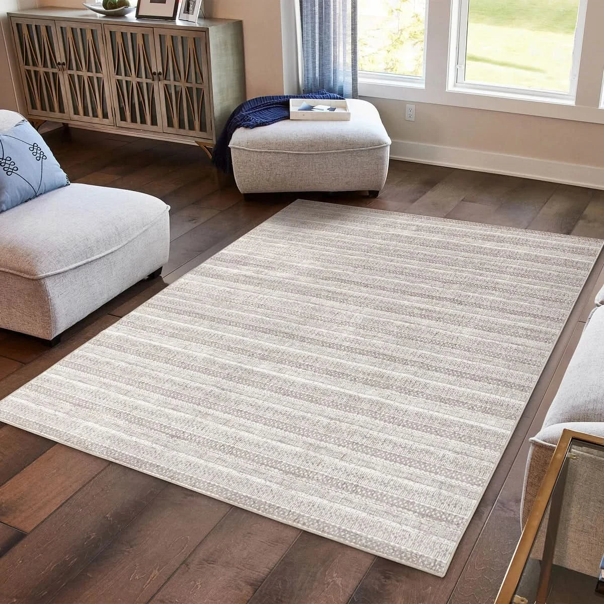 This washable area rug is the perfect addition to elevate your living room, dining room, or family room. This generously sized rug not only provides ample coverage for any of these spaces, but also offers the convenience of easy maintenance. Designed to withstand the demands of daily life, it's made with washable materials, allowing you to keep it looking fresh and clean with minimal effort.